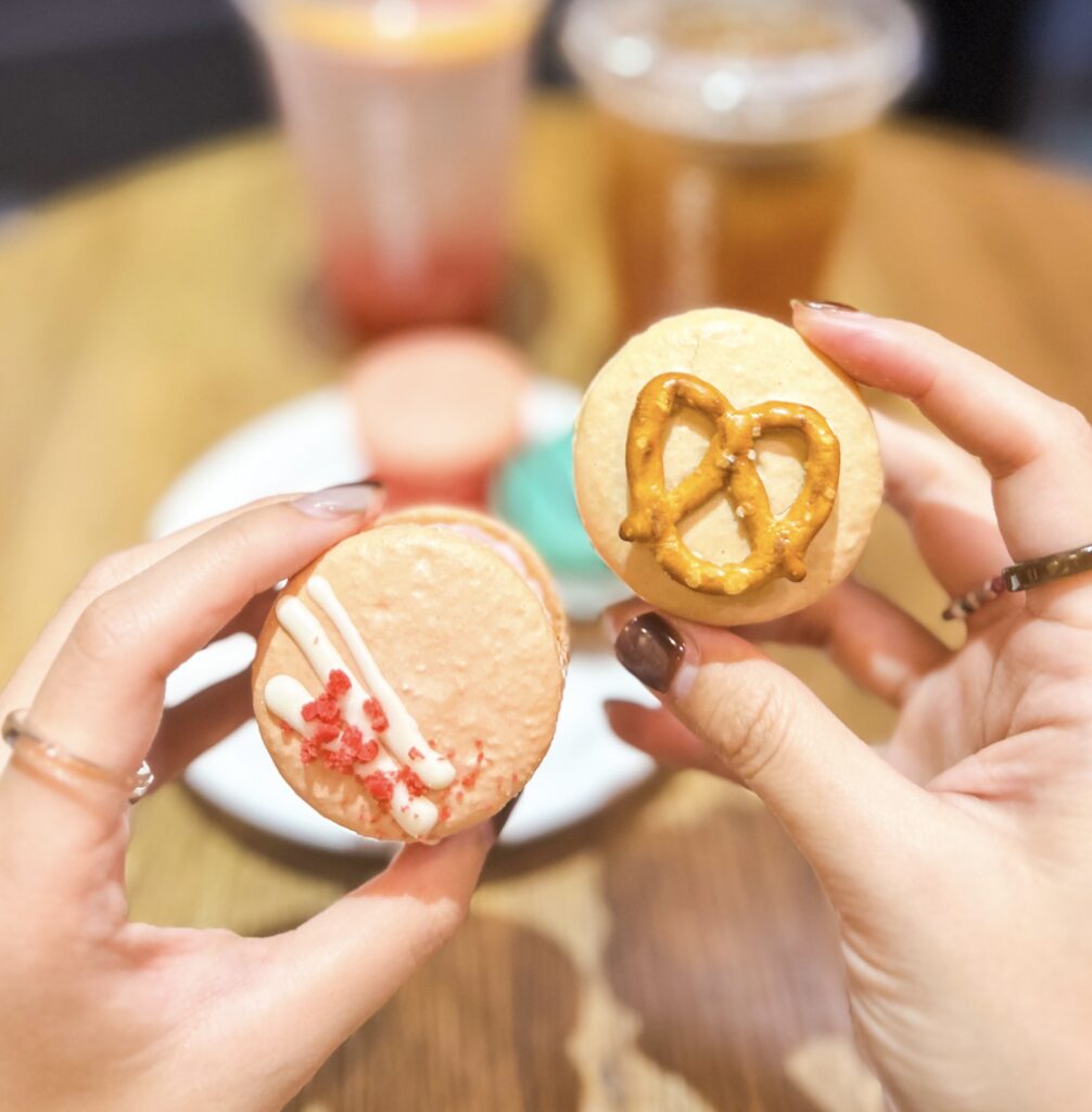 除了經典口味之外,店內也會推出多款限定風味,像是焦糖、抹茶紅豆、黑芝麻等,口味選擇相當豐富。每逢節日,還會推出限定造型馬卡龍,例如萬聖節、聖誕節等,造型可愛又充滿節慶感,很適合拍照打卡。