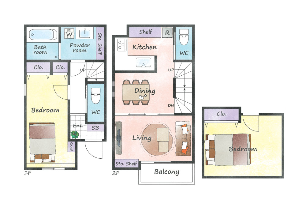 室內 : 寢室 x2、廁所 x2、浴室 x1、客廳廚房