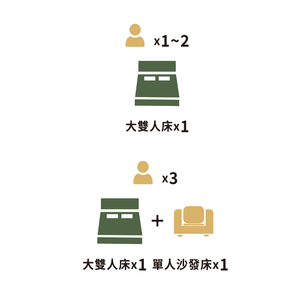床型配置 : 雙人床 x1 & 單人沙發床 x1